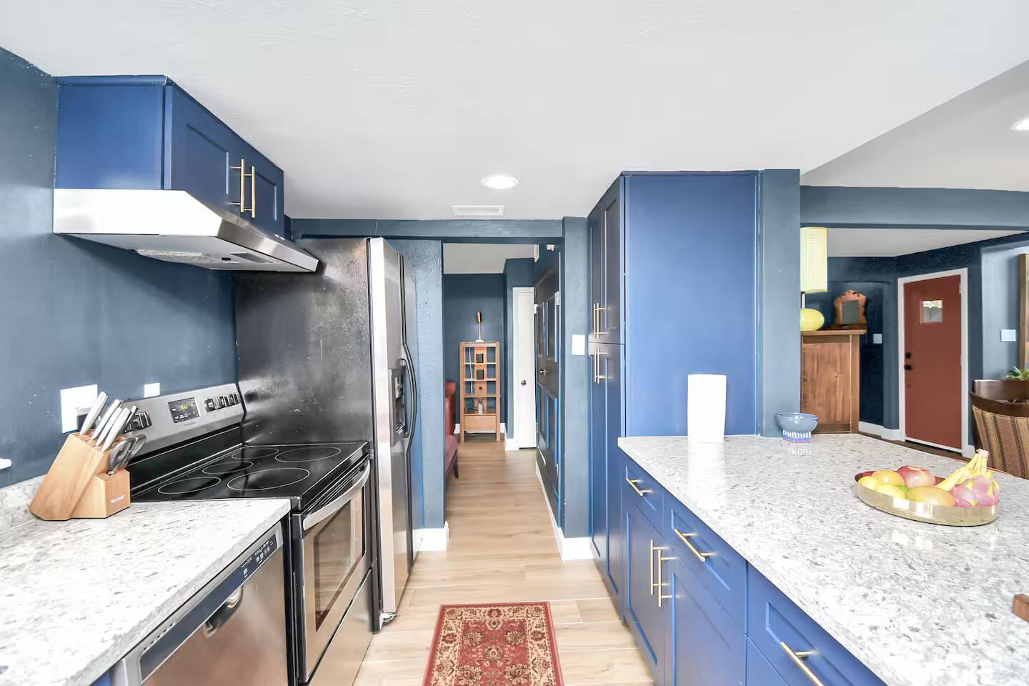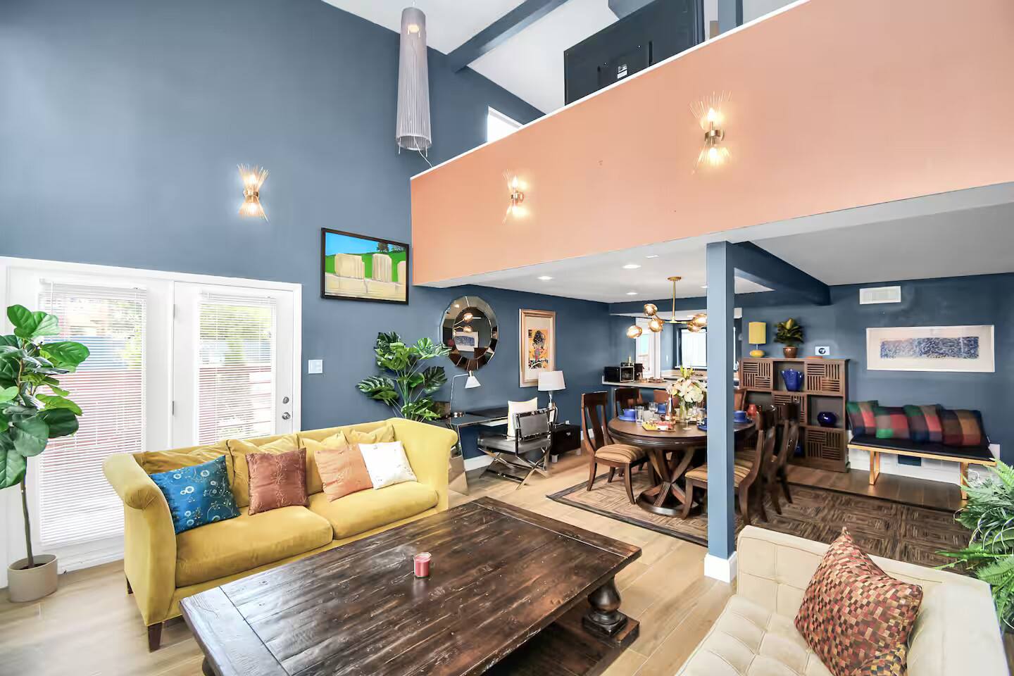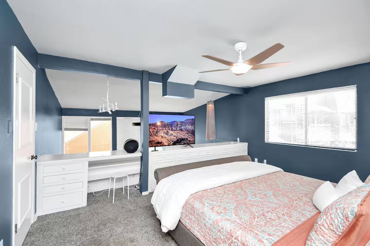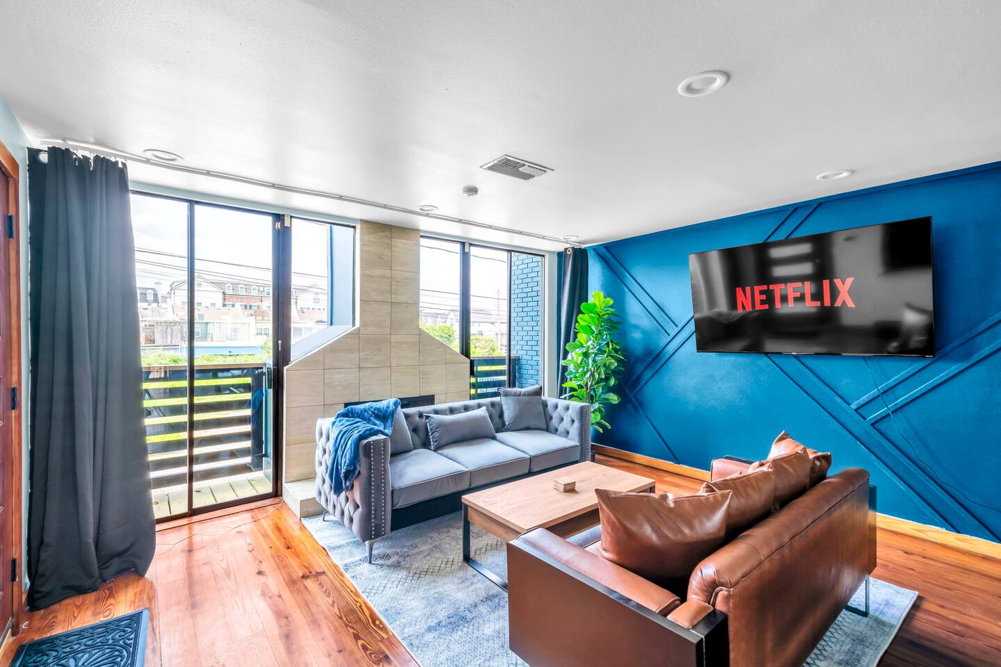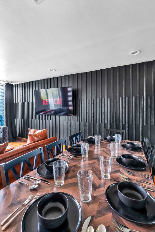 ★★ Additional Units★★ We also offer the any combinations from 4,6,8,10,12 to 14 bedrooms that might work for your group! ★★★Property Highlights★★★ ✓ This listing is 4 homes, directly next door to each other on a private lot ✓ Includes a 65-foot private heated pool and hot tub ✓ 4 Living rooms with a 70in Smart TV in each home. Smart TVs in every bedroom ★ Parking ★ ✓ You'll have access to 3 Private Garages. Each holds 2 cars and an additional 8 vehicles can park in front of the garage for a total of 14 vehicles! We also provide free Level 2 EV chargers for your use! ★ Bedrooms ★ House #1 - Unit A (3rd Floor) Master Bedroom 1 = 2 Queen-size beds (3rd Floor) Bedroom 2 = Queen-size bed (2nd Floor) Bedroom 3 = Queen-size bed (1st Floor) Bedroom 4 = Queen-size bed House #2 - Unit B (3rd Floor) Master Bedroom 1 = 2 Queen-size beds (3rd Floor) Bedroom 2 = Queen-size bed (2nd Floor) Bedroom 3 = Queen-size bed (1st Floor) Bedroom 4 = Queen-size bed House #3 - Unit C (3rd Floor) Master Bedroom 1 = 2 Queen-size beds (3rd Floor) Bedroom 2 = Queen-size bed (2nd Floor) Bedroom 3 = Queen-size bed (1st Floor) Bedroom 4 = Queen-size bed House #4 - Pool House (2nd Floor) Bedroom 1 = Queen-size bed -Loft Style, over looking the living room (2nd Floor) Bedroom 2 = Queen-size bed ★ Bathrooms/ In-Unit Washer and Dryer ★ ✓ Units A,B, C includes 4 full bathrooms spanning all 3 levels, ensuring convenience for guests. ✓ In-unit washer and dryer located on the 3rd floor for easy laundry management during your stay. ✓ Pool House includes 2.5 bathrooms and a washer/dryer. ★ Living Room/Dining★ ✓ Each living room includes 2 couches, providing comfortable seating for relaxation or entertainment. ✓ Each dining room provides seating for up to 8 guests, perfect for enjoying meals together during your stay. Note: The Jacuzzi by the pool is not operational.