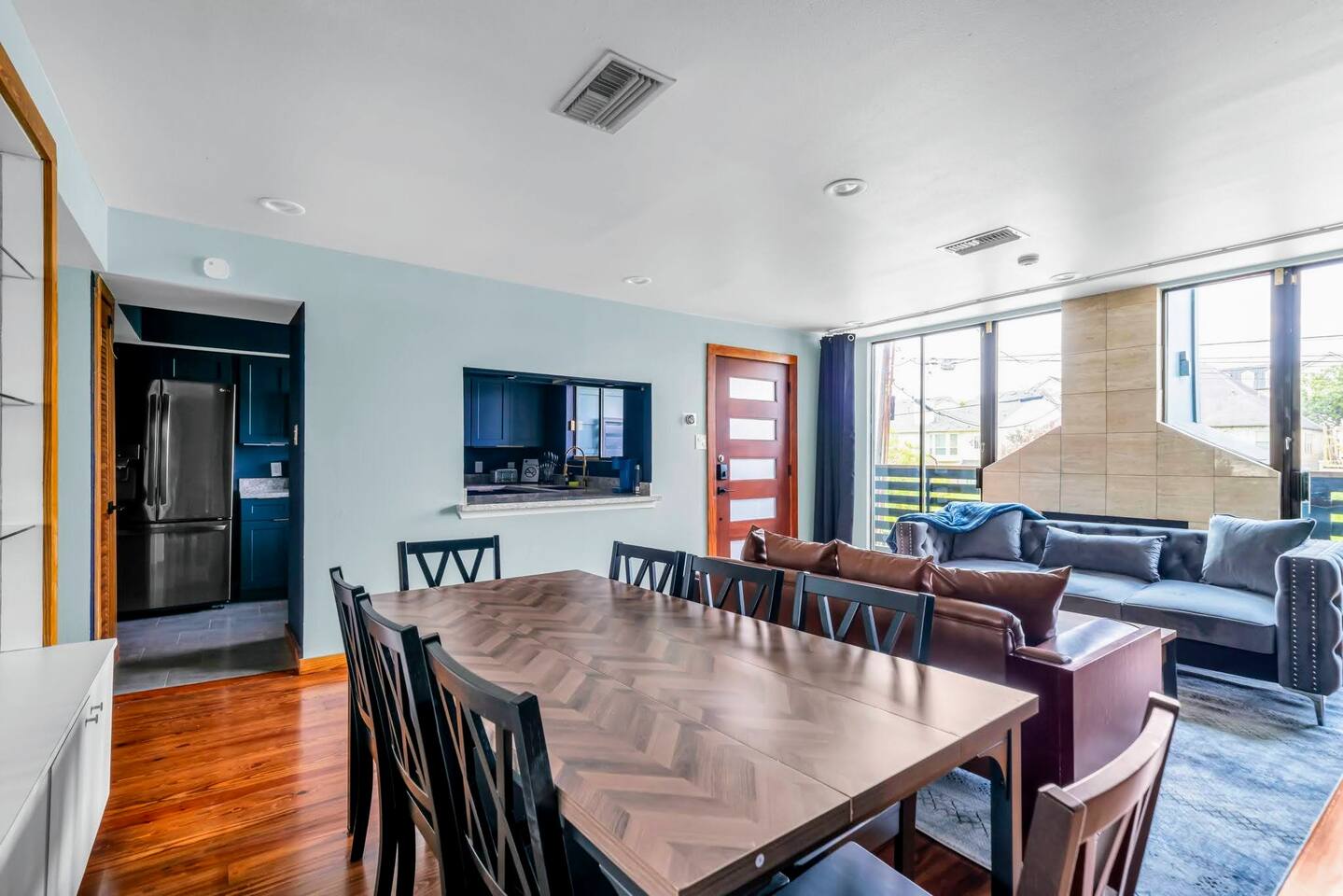 ➡ 65 ft. pool shared by only 4 homes ➡ Private 2-car garage + space for 2 more upfront ➡ In-unit washer & dryer ➡ EV charging station ➡ 70” Smart TV in living room + Smart TVs in every bedroom ➡ Outdoor BBQ grill ➡ 10 mins to top nightlife spots (Washington Ave, Chapman & Kirby & more) ➡ 10–15 mins to Toyota Center, NRG Stadium & Minute Maid Park ➡ Close to Houston Zoo & George R. Brown Convention Center