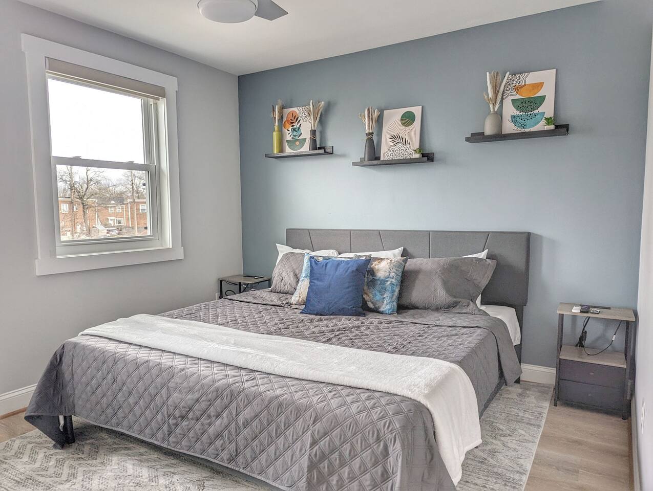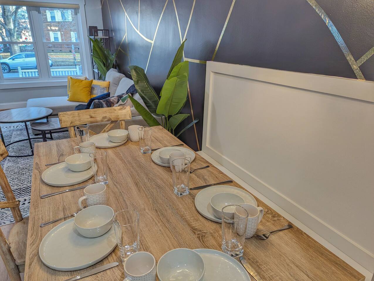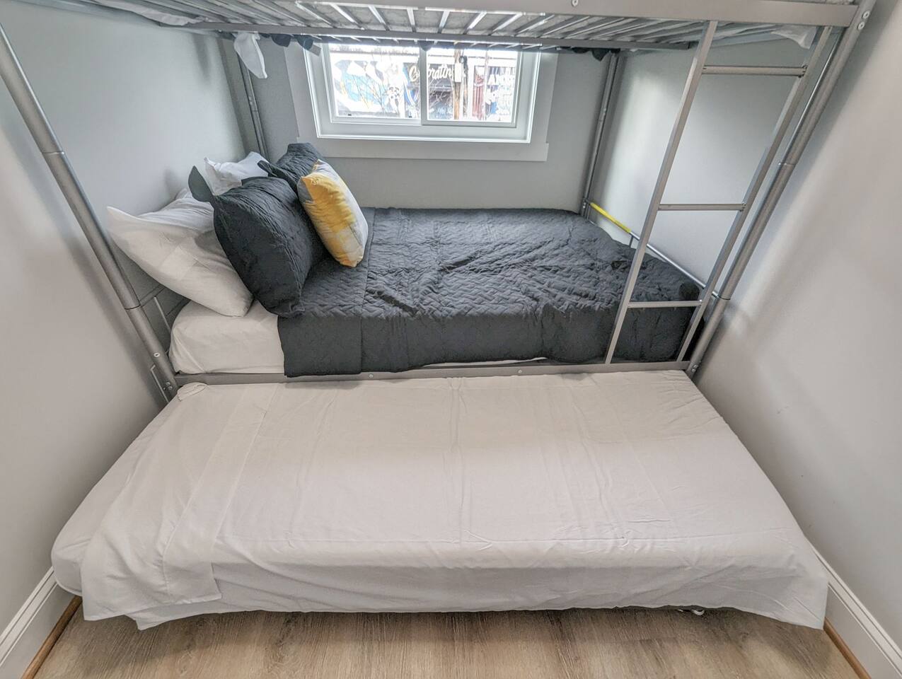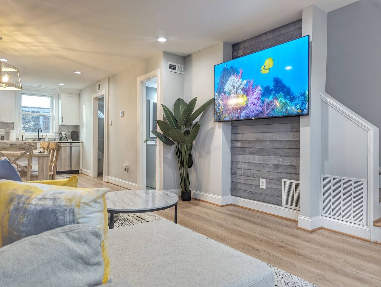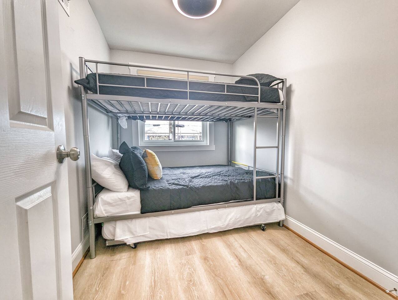 ★★★Property Highlights★★★ ✓ Centrally located home ideal for families and traveling nurses ✓ Conveniently situated 8 minutes from both Old Town and DCA Airport ✓ 5 minutes to shopping at Potomac Yards and 10 minutes to Washington DC ✓ Newly renovated 2-level home with modern amenities ★ Bedrooms ★ ✓ The 2-level home features 3 bedrooms on the 2nd floor, offering various sleeping arrangements. ✓ The master bedroom boasts a spacious King-size bed for ultimate comfort. ✓ The second bedroom provides a cozy Full-size bed, perfect for guests or family members. ✓ The third bedroom offers versatility with a Bunk bed comprising 2 Full-sized beds and a single trundle underneath, accommodating multiple ✓ guests or children. ✓ Each bed is equipped with memory foam mattresses, ensuring a restful and rejuvenating sleep experience for guests. ★ Living Room/Dining ★ ✓ The living room features 1 couch, providing comfortable seating for relaxation or entertainment. ✓ The dining room provides seating for up to 4 guests with additional space on a bench accommodating 2-3 extra people, perfect for enjoying meals together or entertaining guests. ★ Bathrooms/ In-Unit Washer and Dryer ★ ✓ The house includes 1.5 bathrooms, ensuring convenience for guests on both levels. ✓ Convenience is paramount with a washer and dryer located on the 1st floor, allowing guests to easily manage laundry during their stay. ★ Air Conditioning/Heat ★ ✓ The property features main air conditioning and heating controlled by a thermostat in the living room on the first floor, ensuring comfortable indoor temperatures year-round. ★ Smart TVs ★ ✓ Entertainment is at guests' fingertips with smart TVs available in the living room and two of the three bedrooms, all equipped with Roku and Guest mode enabled for personalized viewing experiences. ★ Parking ★ ✓ Although private parking is not available, ample street parking is accessible on the block and in surrounding areas, ensuring convenience for guests with vehicles. ★ Nearby Hospitals/Public Transportation/Metro/Subway ★ ✓ Ideal for traveling nurses or medical professionals, the property is conveniently located near multiple hospitals, providing easy access to work. ✓ Guests have multiple transportation options, with the nearest Metro station, Potomac Yard Metro Station, serving the Blue and Yellow lines, located approximately a 20-minute walk away. ✓ Two bus lines within 3-4 blocks provide access to the Metro Station, and it's just a quick 5-minute Uber ride to reach the station. Note: We have other listings! Ranging from 1 Bedroom up to 2 separate units for a combined 5 bedroom listing, we can accommodate your group. Send us a message to inquire!