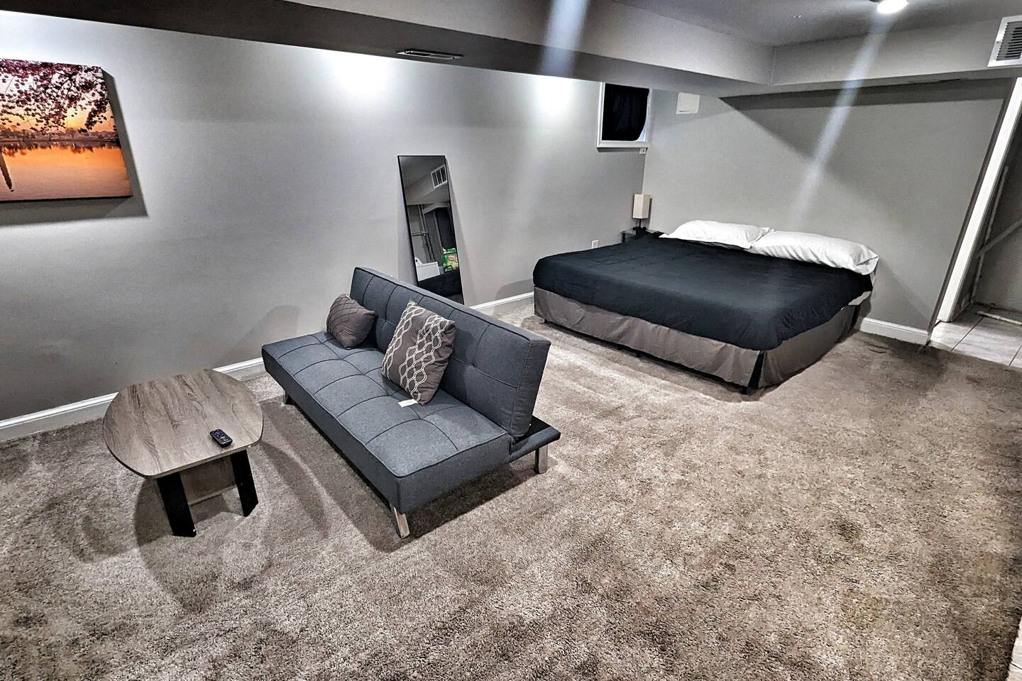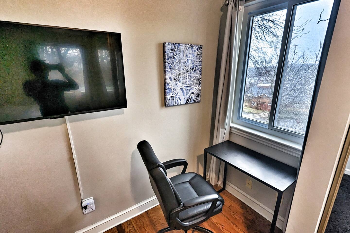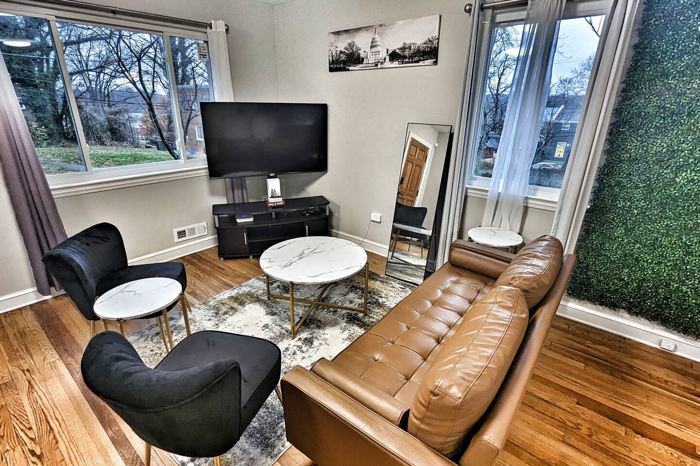 ★★★Property Highlights★★★ ✓ Located on a quiet residential street, providing a peaceful retreat during your stay. ✓ This 3-level home offers spacious accommodations for your comfort. ✓ TVs in every room for entertainment convenience. ✓ Master bedroom with ensuite bathroom for added privacy and comfort. ✓ Access to a private backyard for outdoor relaxation. ✓ Enjoy free unrestricted street parking, ensuring convenience for guests with vehicles. ✓ In-unit washer and dryer provided for easy laundry management during your stay. ★ Bedrooms ★ ✓ This house features 4 bedrooms and 2 full bathrooms spanning 3 levels. ✓ On the 2nd floor, the main bedroom offers 1 Queen-size bed, the second bedroom has 1 Full-sized bed, and the small third bedroom has 1 Twin-sized day bed. ✓ The lower level includes an open concept bedroom with a King-sized bed, a full in-suite bathroom, and a Futon couch for additional sleeping arrangements. ★ Living Room/Dining★ ✓ The living room includes 1 couch, providing comfortable seating for relaxation or entertainment. ✓ The dining room provides seating for up to 4 guests, perfect for enjoying meals together during your stay. ★ Washer and Dryer ★ ✓ In-unit washer and dryer located on the lower level for easy laundry management during your stay. ★ Parking ★ ✓ While private parking is not available, plenty of unrestricted street parking is accessible on the block with no restrictions. ★ Air Conditioning/Heat ★ ✓ Main air conditioning and heating controlled by a Nest thermostat on the first floor in the living room. ★ TV ★ ✓ Enjoy entertainment with Roku TVs in the living room and lower level, with guest mode enabled for personalized streaming services. When you first turn on the TV, it'll ask you for a date and time to automatically sign you out. Additionally, Fire TVs are provided in the bedrooms. ★ Public Transportation/Metro/Subway ★ ✓ The nearest Metro station, Benning Road, is located approximately 0.8 miles away, about a 15-minute walk from the property. NOTE: If you are looking to be able to walk to the bars and monuments, search in NW DC. This is a quiet area. This house offers a comfortable and convenient stay for guests, whether visiting for leisure or work, with its amenities and proximity to transportation. If you have a larger group, inquire about our other listings ranging from 1 bedroom up to 5 bedrooms across 2 separate units to accommodate your needs.
