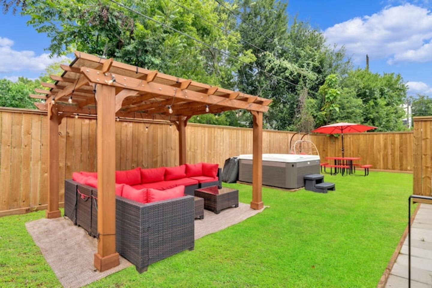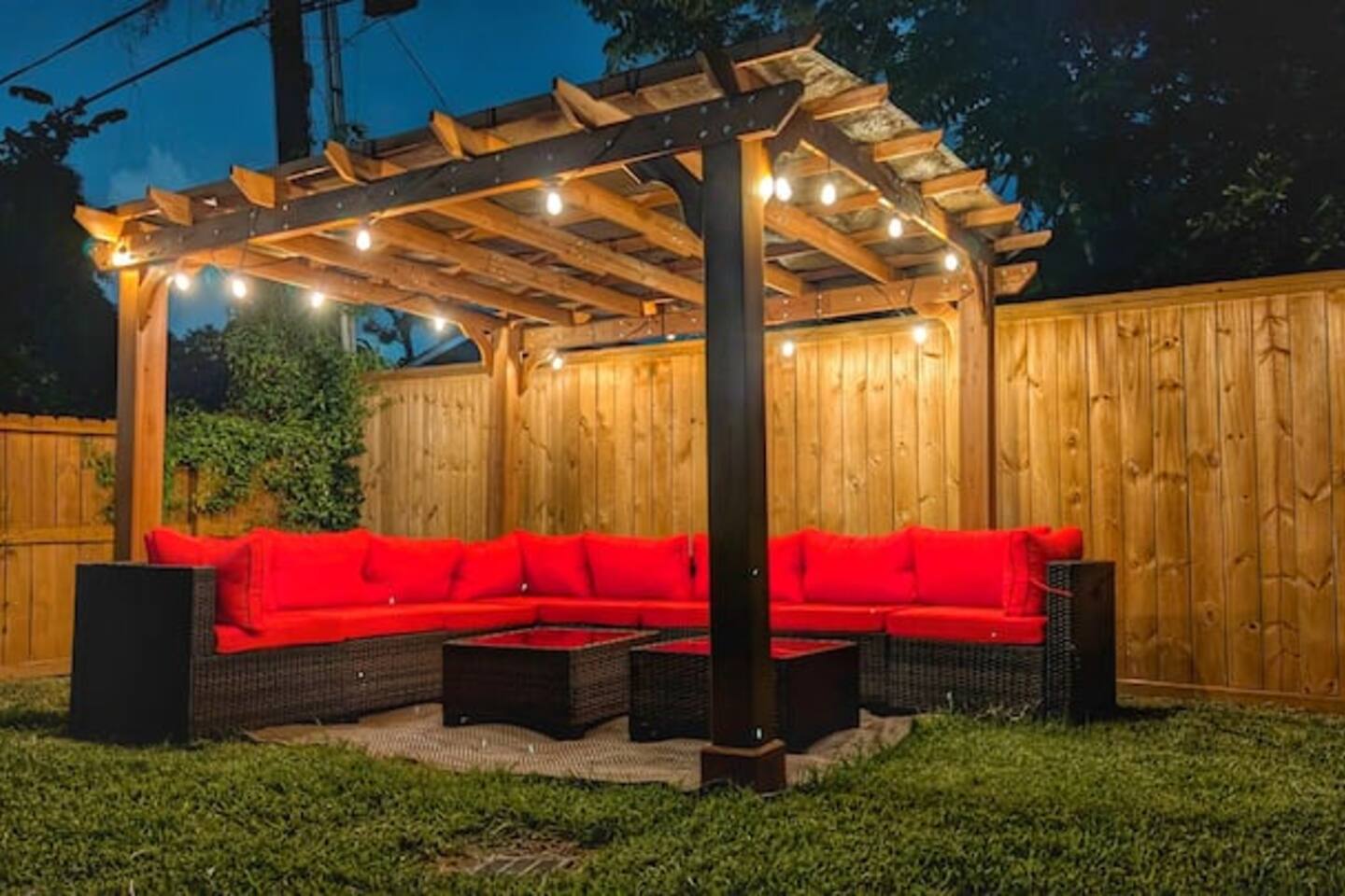 ★★★ Property Highlights ★★★ ✓ This listing is a 3-bedroom, 2-bathroom home ✓ Shared private backyard with a Jacuzzi between 2 homes — perfect for relaxing after a day out ✓ Centrally located near major attractions such as the Houston Zoo and George R. Brown Convention Center ✓ Only 10–15 minutes to Toyota Center, Minute Maid Park, and Houston’s hottest nightlife spots, Eleven Eleven, Space, Sekai, Chapman & Kirby, and more ✓ Less than 5 minutes to NRG Stadium and the Texas Medical Center ✓ Living room with a 65” Smart TV, plus Smart TVs in two of the bedrooms ★ Parking ★ ✓ Parking available for up to 2 cars ★ Bedrooms ★ ✓ Your home features 3 bedrooms, each equipped with a TV. Master Bedroom #1 = Queen-size bed Bedroom #2 = Queen-size bed Bedroom #3 = Queen-size bed ★ Bathrooms / In-Unit Washer and Dryer ★ ✓ Includes 2 bathrooms for added convenience during your stay ✓ In-unit washer and dryer available for easy laundry management during longer stays ★ Living Room / Dining ★ ✓ The living room includes a comfortable sofa for relaxation or entertainment ✓ Dining area seats up to 4 guests, perfect for meals or casual gatherings ★★ Additional Units ★★ Need more space? Ask us about our other listings that can accommodate groups of up to 12 guests! Note: The shared Jacuzzi is located in the backyard and is shared between two homes.