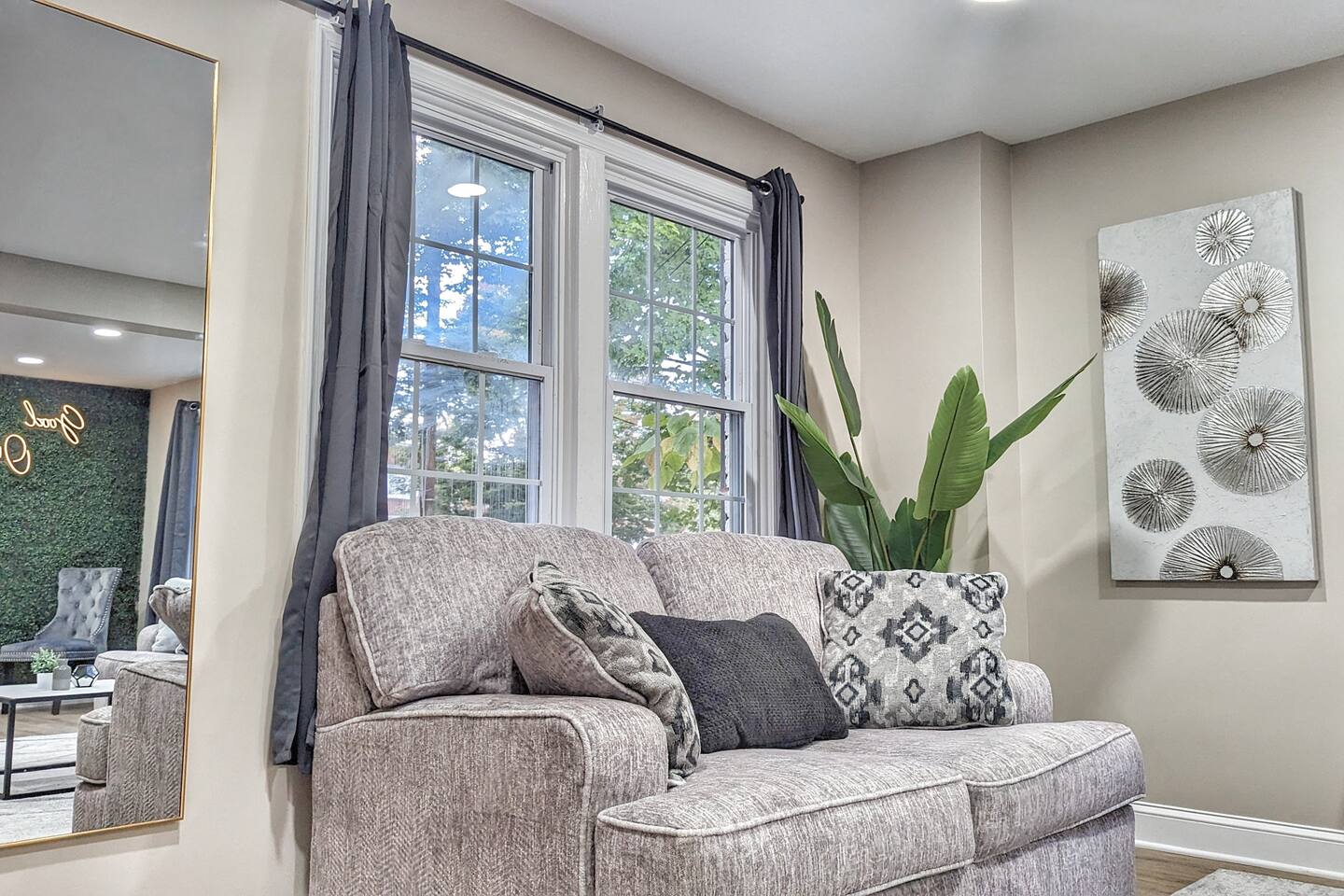 ★★★Property Highlights★★★ ✓ Conveniently located 3 blocks from Deanwood Metro Station, serving the Blue/Orange/Silver Lines, providing easy access to Washington DC attractions. ✓ Just a 10-minute drive to FedEx Field for football games and concerts, perfect for sports enthusiasts. ✓ This 2-level home offers access to a private backyard, ideal for outdoor relaxation or gatherings. ✓ Enjoy free unrestricted street parking, with additional parking available around the corner on Quarles St and 50th St. ✓ In-unit washer and dryer for added convenience during your stay. ★ Bedrooms ★ ✓ The house features 4 bedrooms spread across 2 levels. ✓ On the 2nd floor, the first 3 bedrooms offer Queen-size beds, providing comfortable accommodations. ✓ Additionally, there is a small 4th bedroom with 1 Twin-sized day bed, perfect for individual guests or children. ★ Living Room/Dining★ ✓ The living room includes 1 couch, providing comfortable seating for relaxation or entertainment. ✓ The dining room provides seating for up to 4 guests, perfect for enjoying meals together during your stay. ★ Bathrooms/ In-Unit Washer and Dryer ★ ✓ The property includes 2 full bathrooms spanning 2 levels, ensuring convenience for guests. ✓ In-unit washer and dryer located on the 2nd floor for easy laundry management during your stay. ★ Air Conditioning/Heat ★ ✓ Main air conditioning and heating controlled by a thermostat on the first floor in the living room, ensuring comfortable indoor temperatures year-round. ★ TV ★ ✓ Enjoy entertainment with 1 smart TV in the living room, equipped with FireTV for your viewing pleasure. ★ Parking ★ ✓ While private parking is not available, ample unrestricted street parking is accessible on the block and nearby streets. Additional parking is available around the corner on Quarles St and 50th St. ★ Public Transportation/Metro/Subway ★ ✓ Conveniently located just 3 blocks from Deanwood Metro Station, serving the Blue/Orange/Silver Lines, offering easy access to Washington DC's attractions and landmarks. Note: ✓ This property offers a comfortable and convenient stay for guests, whether visiting for leisure or work, with its amenities and proximity to transportation and attractions. If you have a larger group, inquire about our other listings ranging from 1 bedroom up to 5 bedrooms across 2 separate units to accommodate your needs.