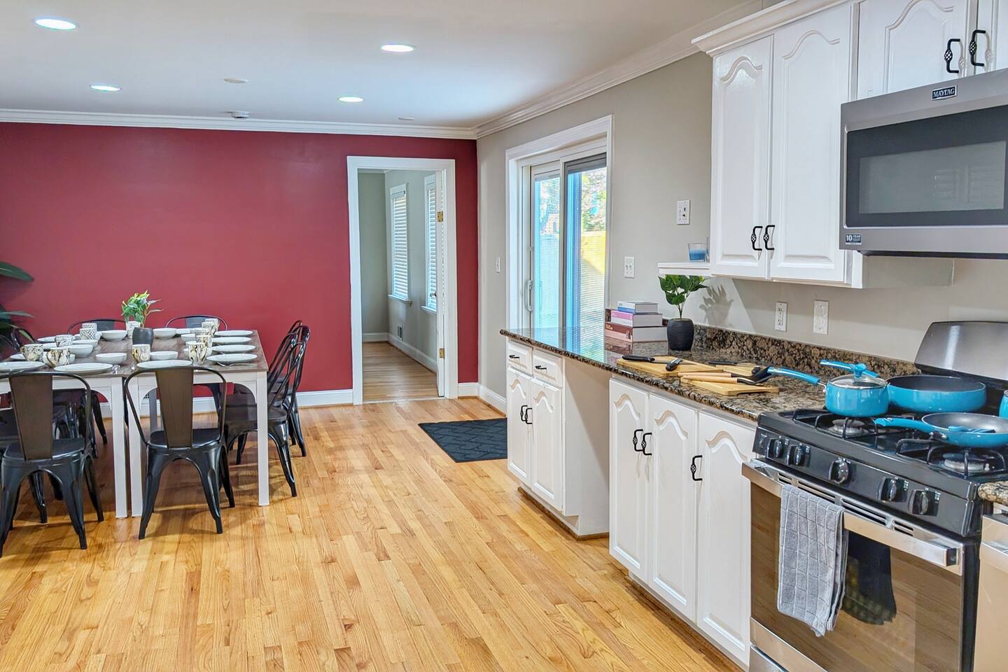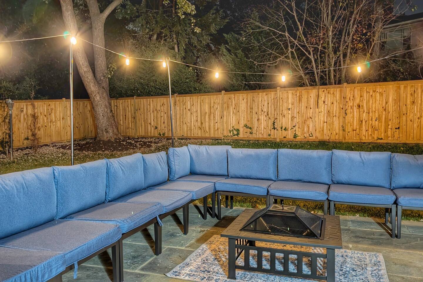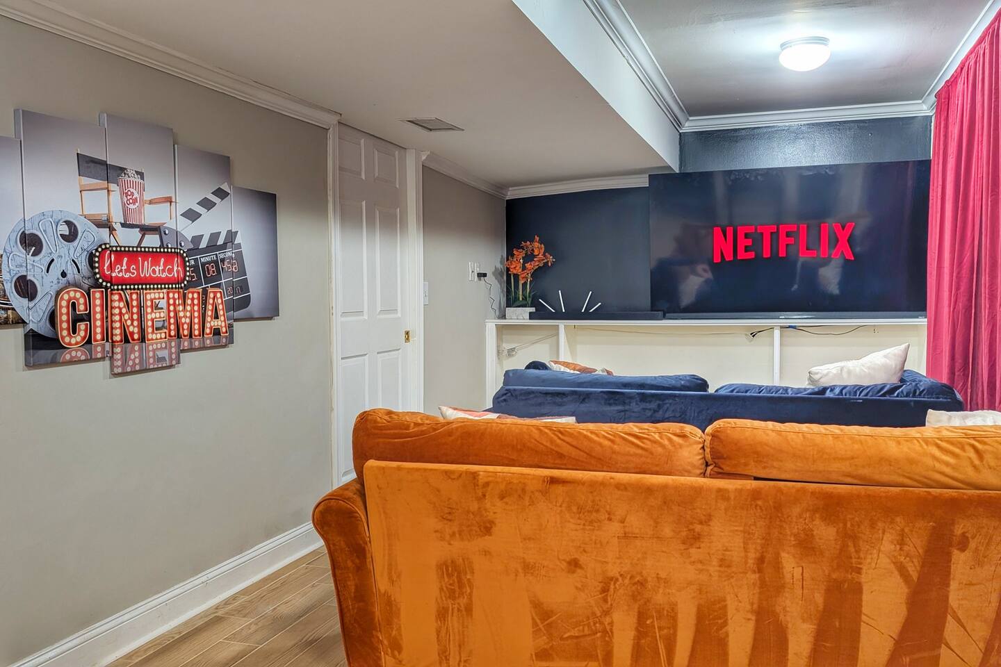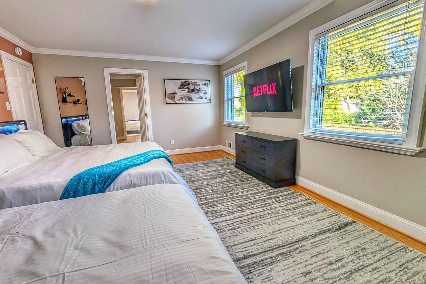 ➡5300 Sq Ft (490 m2) ➡9 Bedrooms (8 King Beds) ➡Four 70in TVs in Living room, Seating for up to 20 people ➡ Private parking for 6+ cars ➡Blocks away from supermarkets & close to restaurants ➡Right off of I-395 Highway, direct to DC ➡10 min drive to DC (National Mall, Lincoln Memorial etc) ➡Across the street from a park ➡ Private backyard w/ fire pit and seating for 16+ ➡Theater room w/ 75in TV ➡Dedicated office ➡Dining area in main kitchen for up to 12 ➡3 Sets of clothes washers and dryers
