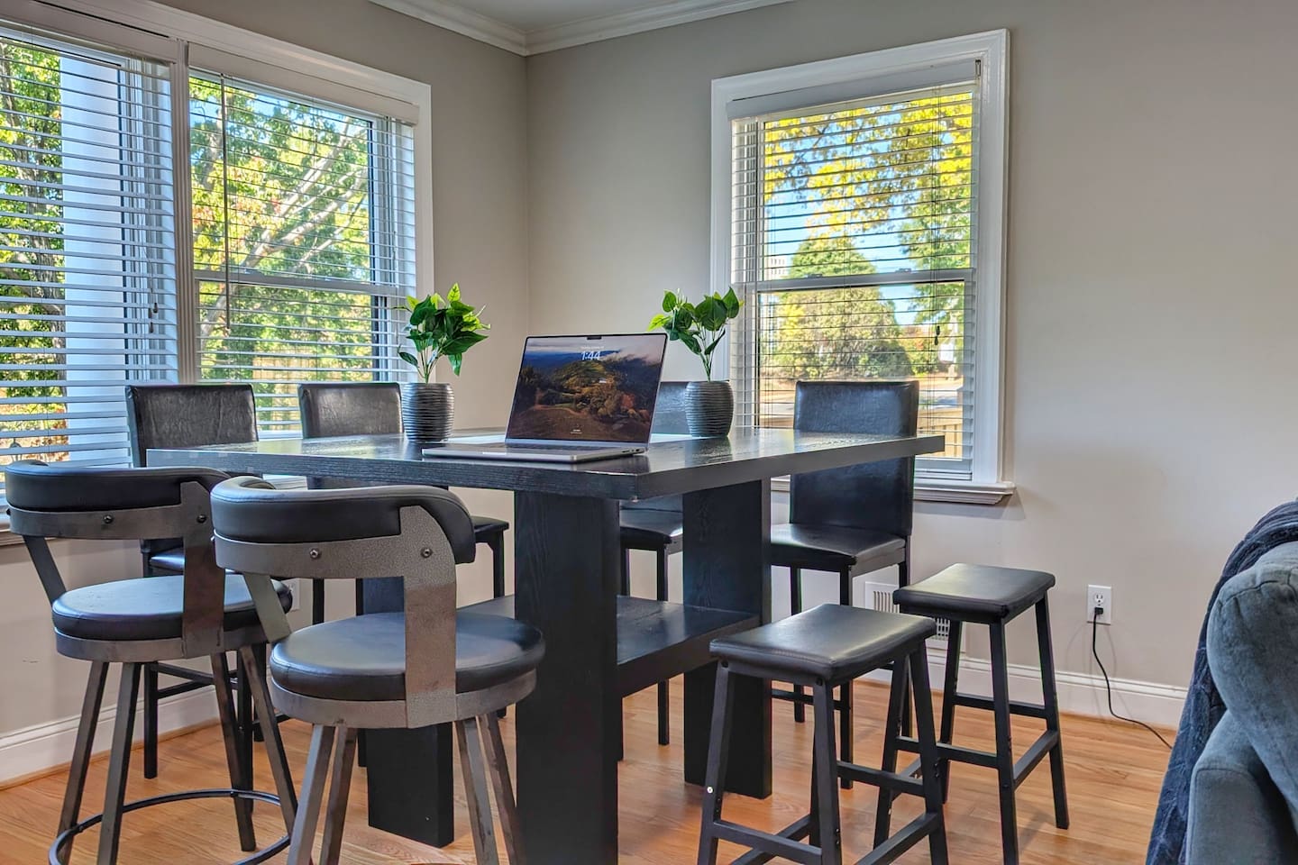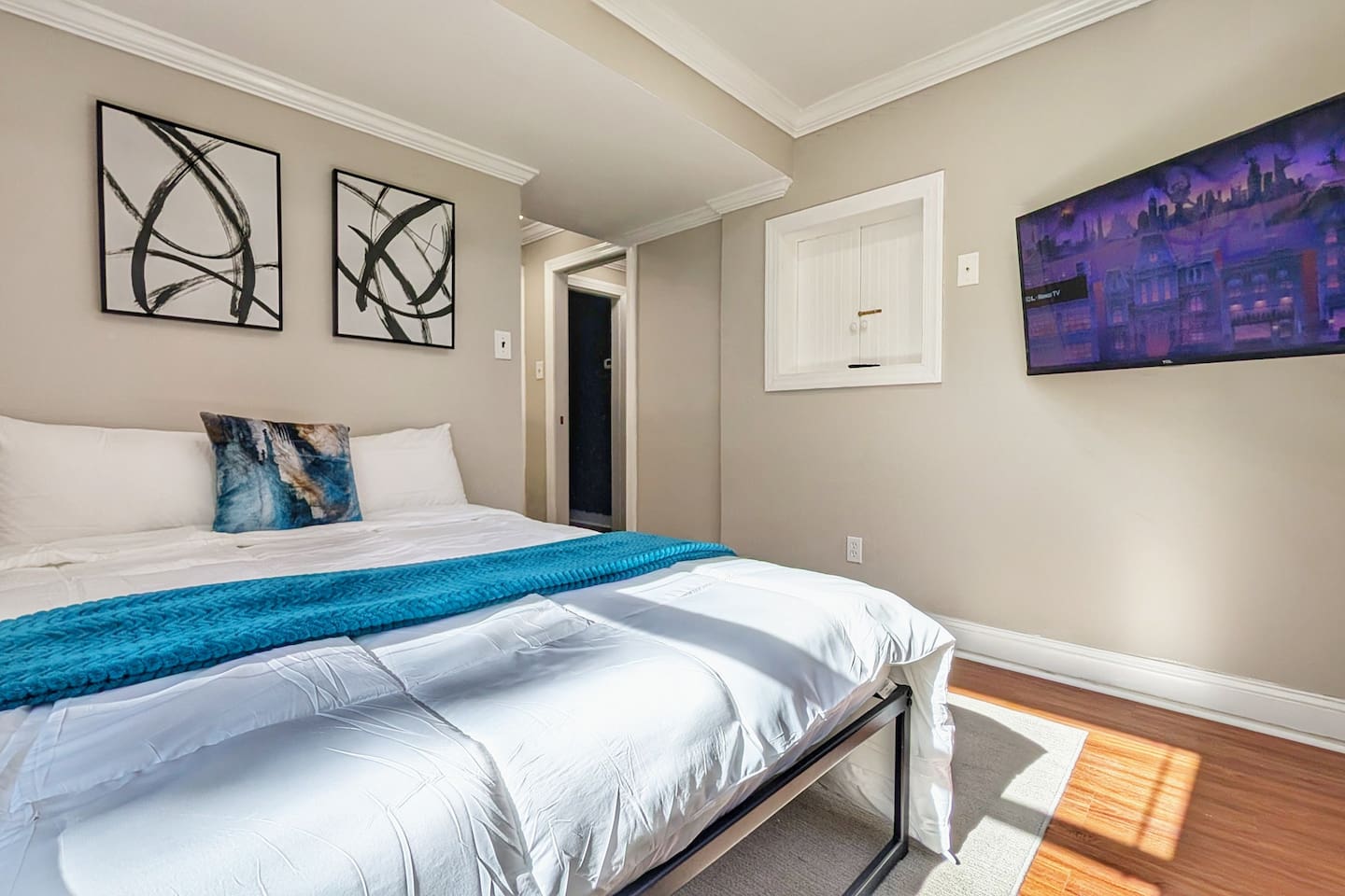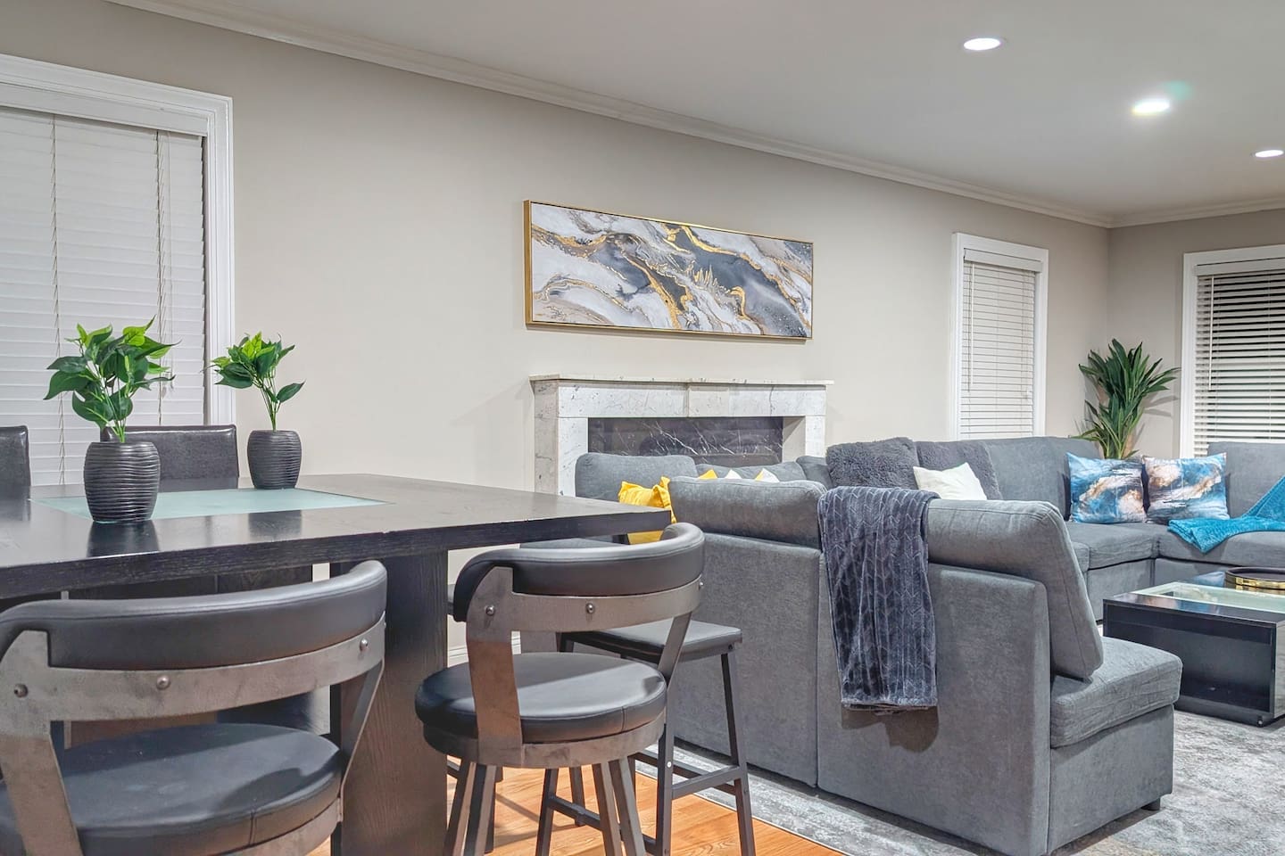 ➡5300 Sq Ft (490 m2) ➡9 Bedrooms (8 King Beds) ➡Four 70in TVs in Living room, Seating for up to 20 people ➡ Private parking for 6+ cars ➡Blocks away from supermarkets & close to restaurants ➡Right off of I-395 Highway, direct to DC ➡10 min drive to DC (National Mall, Lincoln Memorial etc) ➡Across the street from a park ➡ Private backyard w/ fire pit and seating for 16+ ➡Theater room w/ 75in TV ➡Dedicated office ➡Dining area in main kitchen for up to 12 ➡3 Sets of clothes washers and dryers