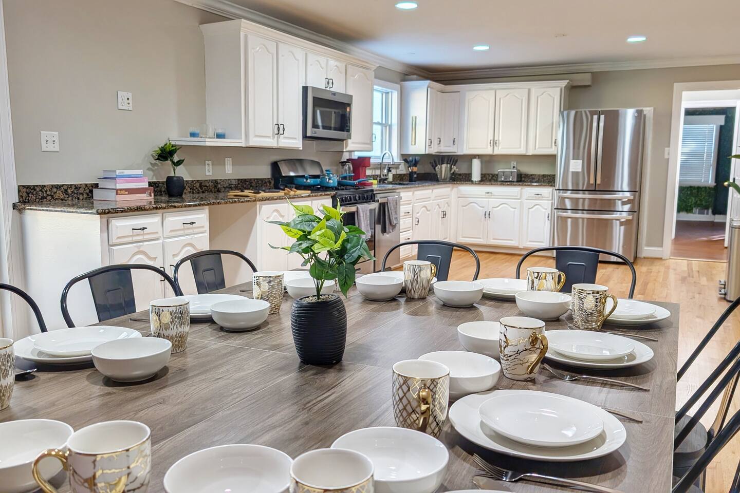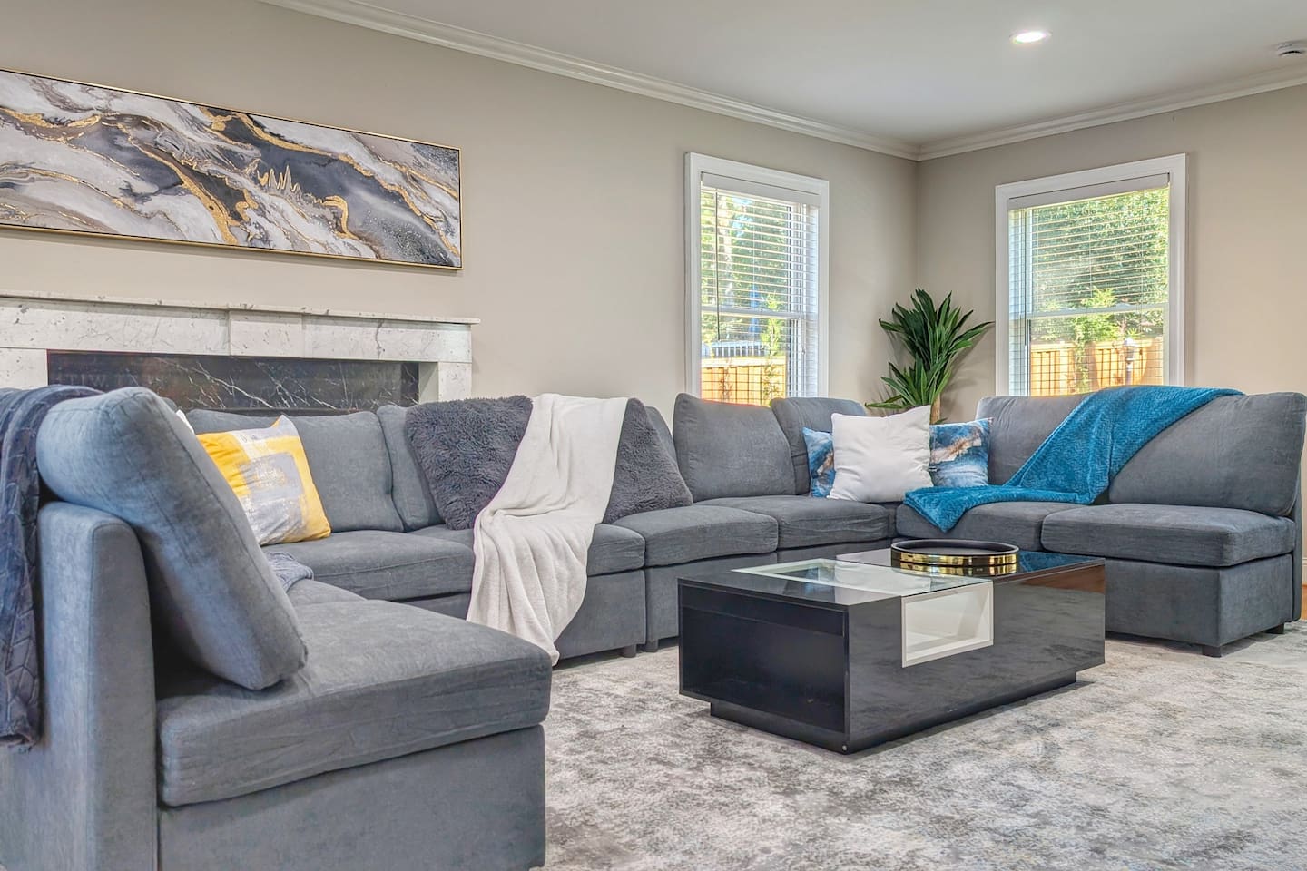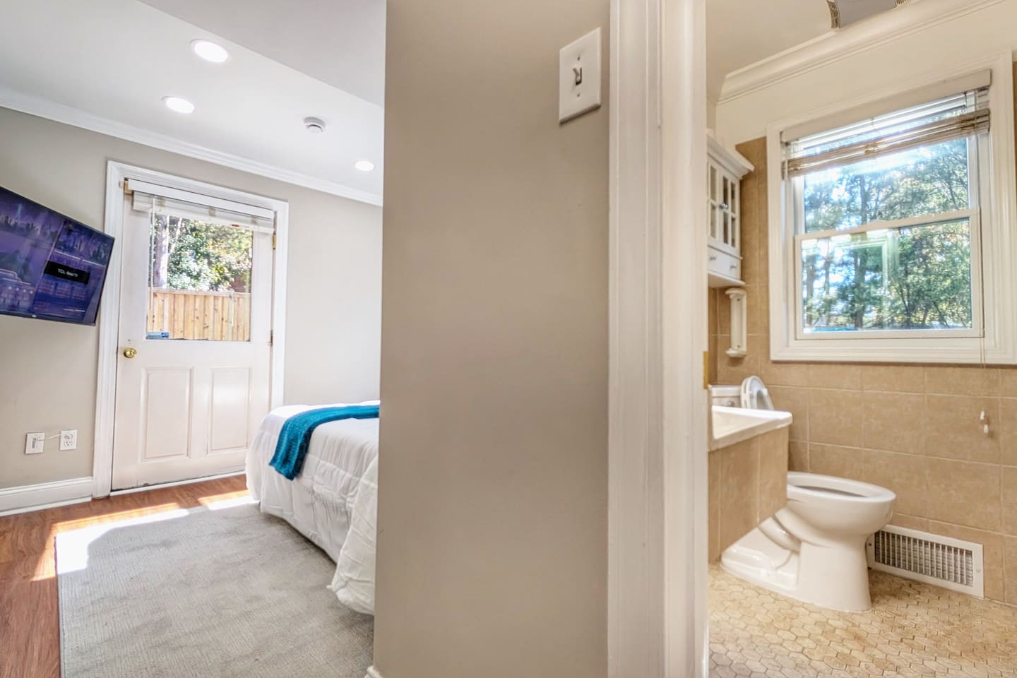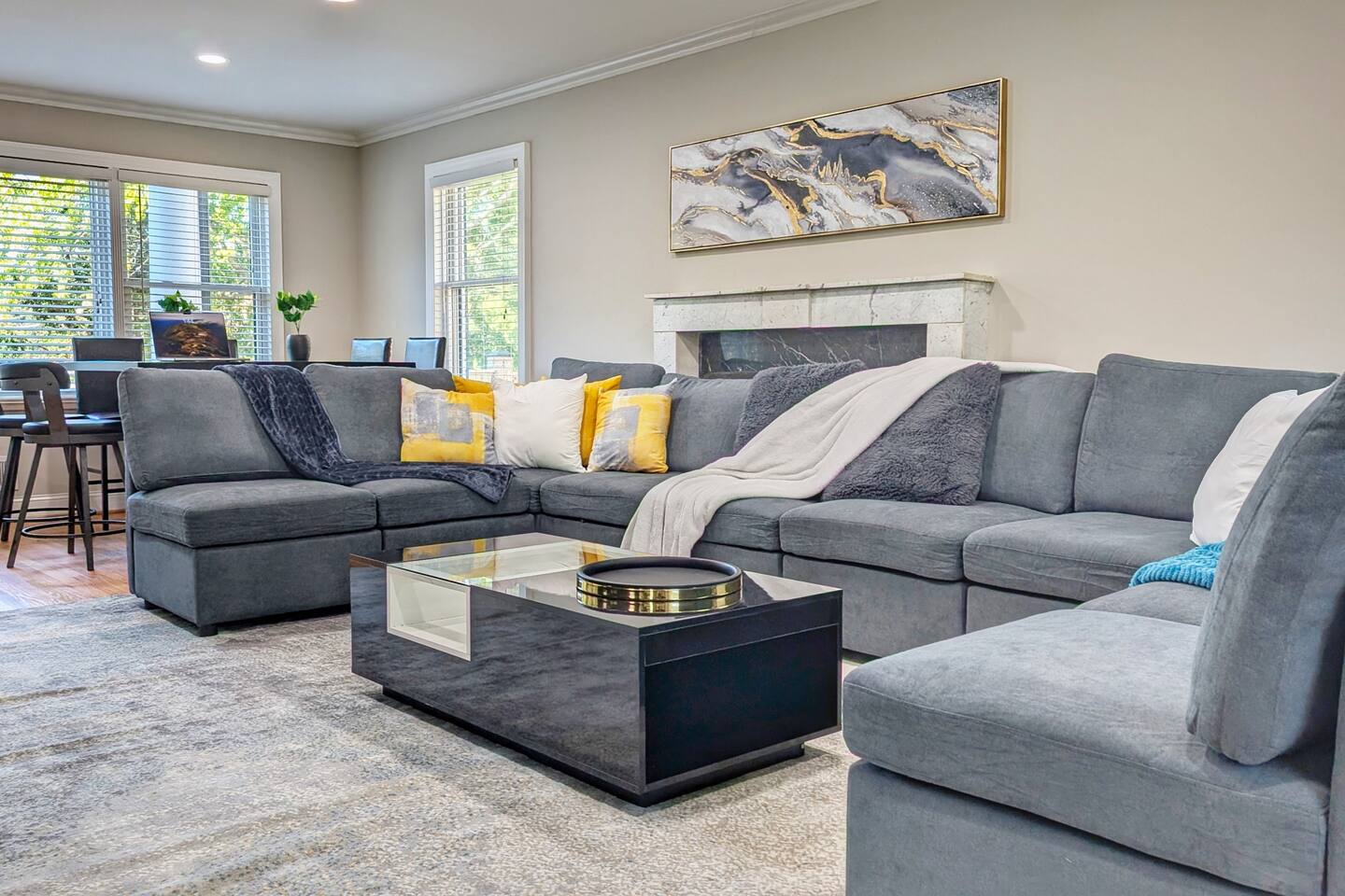 ➡5300 Sq Ft (490 m2) ➡9 Bedrooms (8 King Beds) ➡Four 70in TVs in Living room, Seating for up to 20 people ➡ Private parking for 6+ cars ➡Blocks away from supermarkets & close to restaurants ➡Right off of I-395 Highway, direct to DC ➡10 min drive to DC (National Mall, Lincoln Memorial etc) ➡Across the street from a park ➡ Private backyard w/ fire pit and seating for 16+ ➡Theater room w/ 75in TV ➡Dedicated office ➡Dining area in main kitchen for up to 12 ➡3 Sets of clothes washers and dryers